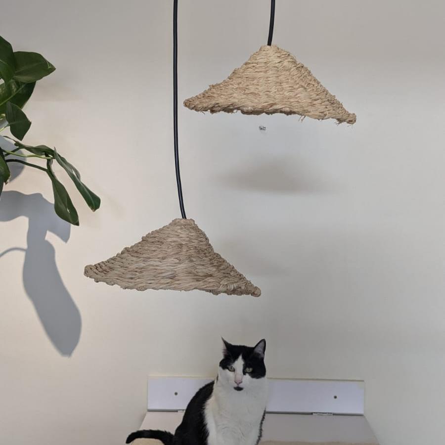 2 lámparas tejidas con cuerda rafia, perfectas para veladores o para poner juntas sobre una mesa de comedor o cocina. También se venden por separado c/u $35.000.