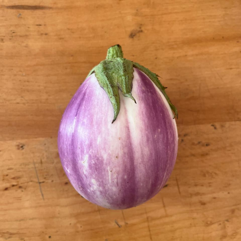 Berenjena blanca agroecológica de temporada. Rica para preparar Babaganush, pino vegetariano, o hamburguesas!