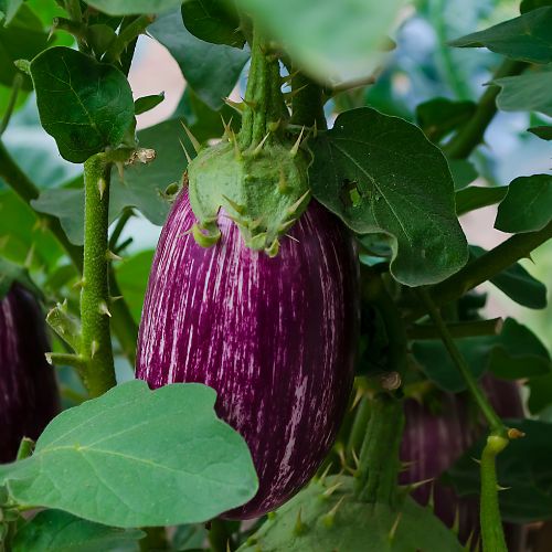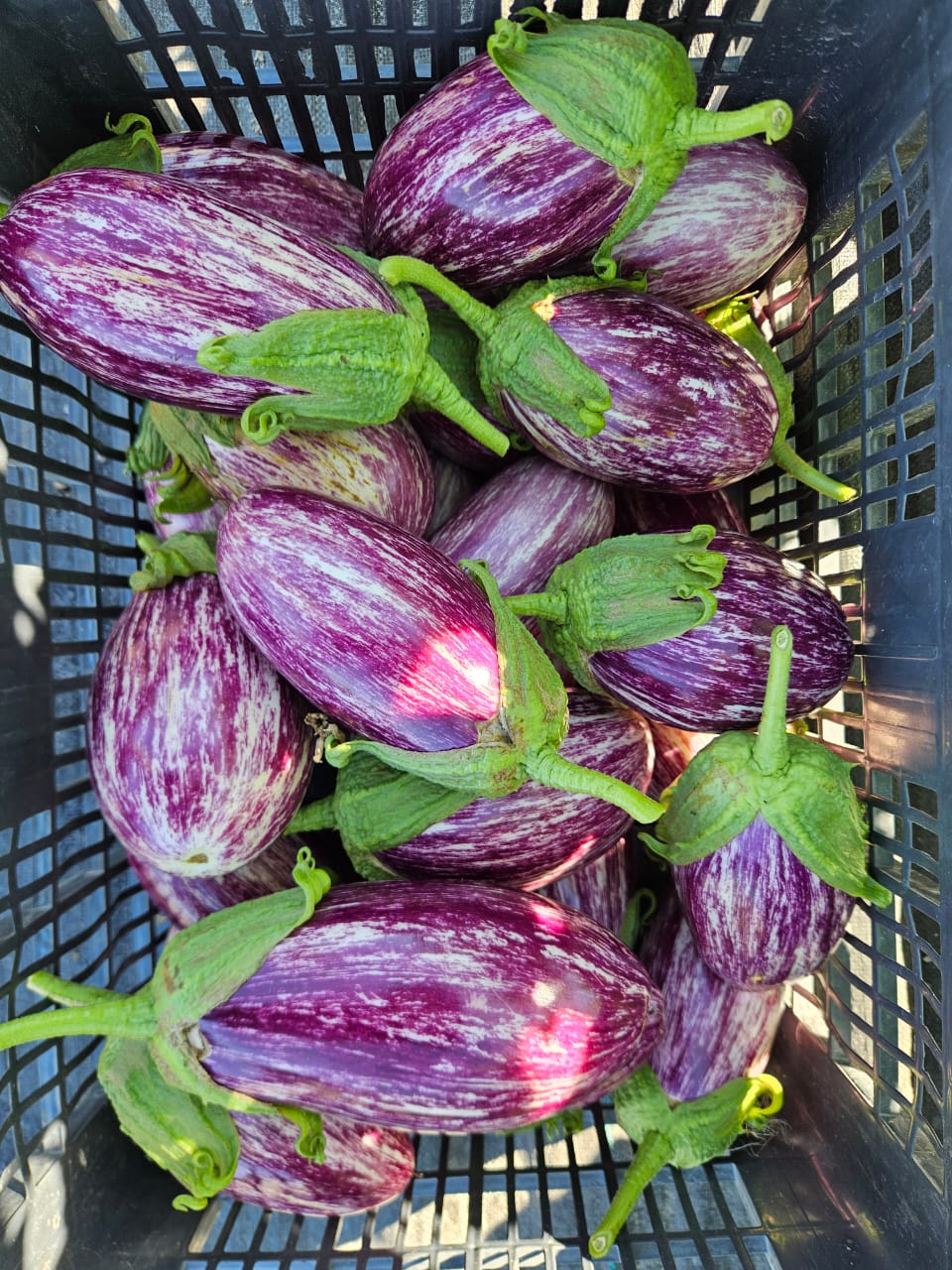 Berenjena tipo Gandia limpia de químicos y agrotóxicos. Cultivado en Pichidegua por nuestros amigos de Tocabri.