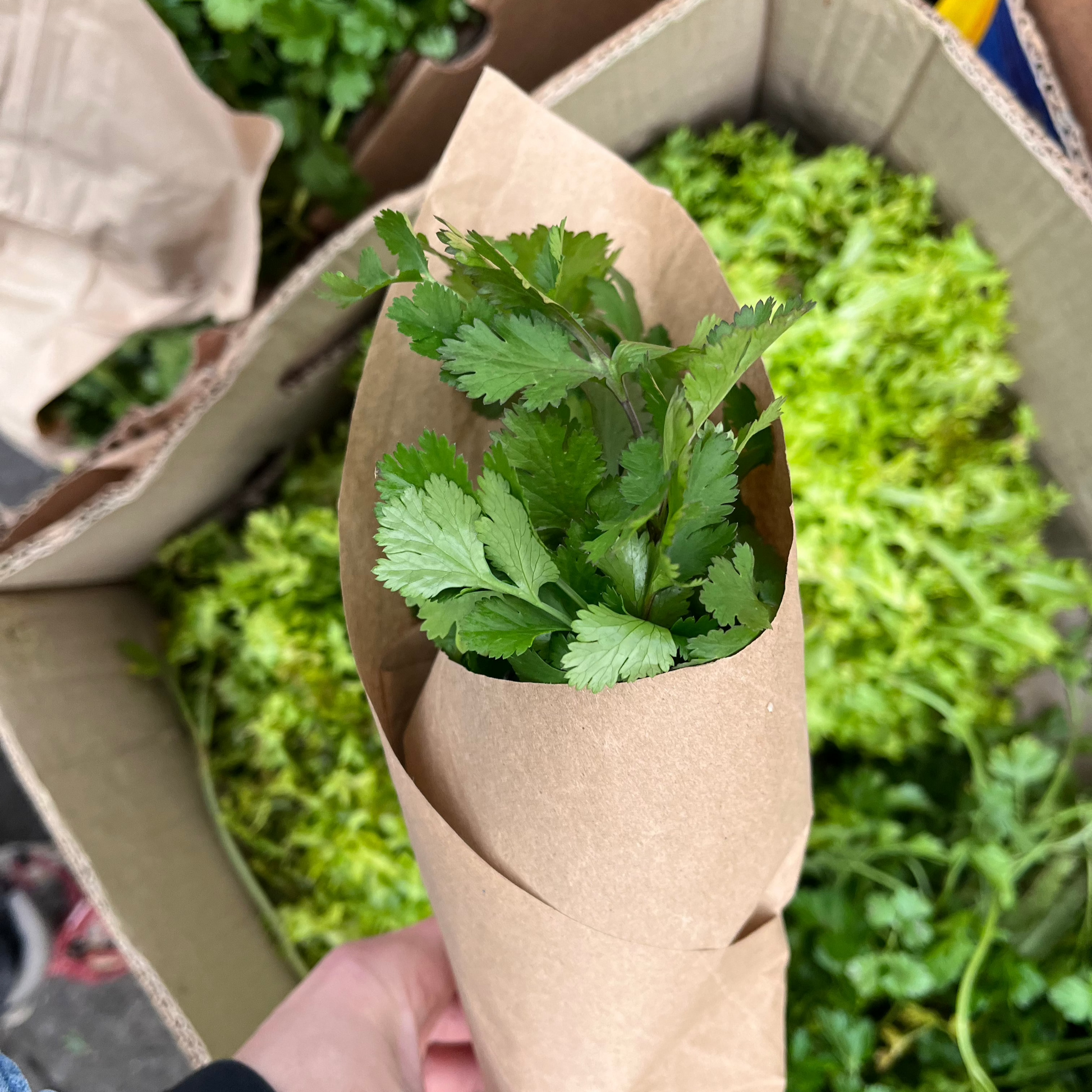 Atado de Perejil agroecológico cultivado en Lampa por Eva y su papá.